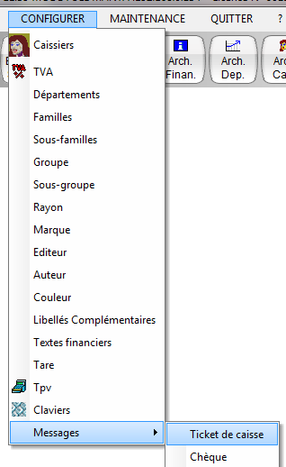 Pour accéder à la configuration du ticket de caisse suivez le menu comme indiqué ci-dessous: