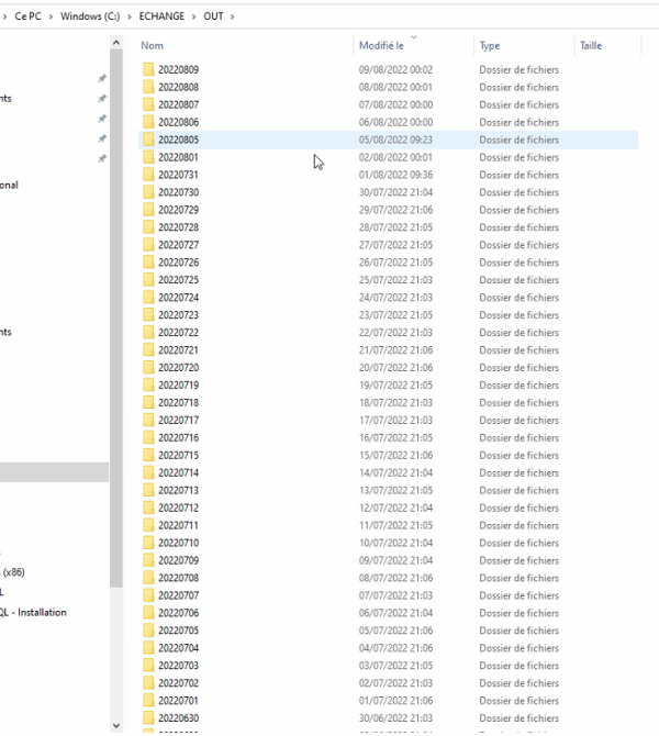 les fichiers se situe dans c/echange/out/ ,comme ceci