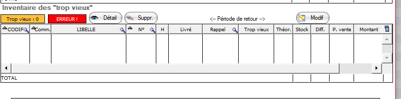 La partie du bas ou les parutions inventoriées, trop vieilles ou en erreur sont présentes.