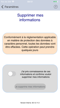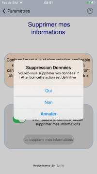 ATTENTION : Toute suppression des informations personnelles est DEFINITIVE
