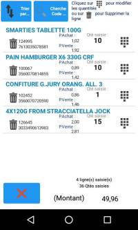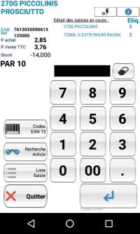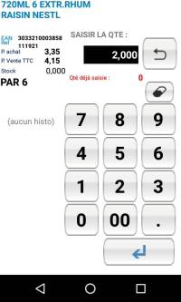 Scanner votre premier produit (ou taper son code EAN à l'aide du pavé numérique et la touche entrée) puis rentrer votre quantité et valider avec la touche entrée :
