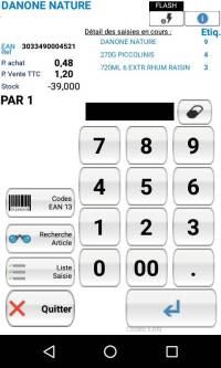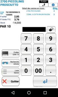 Pour passer en mode Flash cliquer sur l'icone “Flash” (Le mot flash apparaît au dessus de l'icone) , ensuite taper la quantité du produit et scanner le :