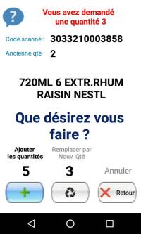Si vous avez déjà scanné un produit, le logiciel vous demande ce que vous voulez faire Ajouter la quantité ou la remplacer :