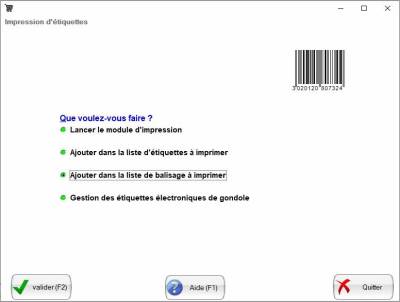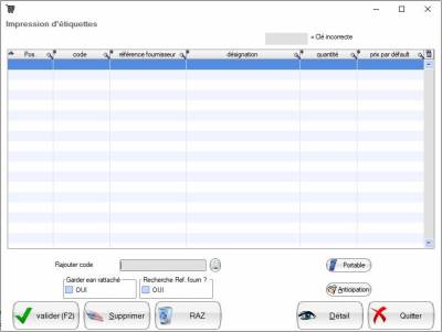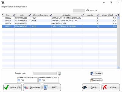 Ensuite “Validez la saisie sur STORE-POS cela vous ouvre Liste des étiquettes