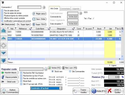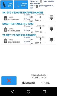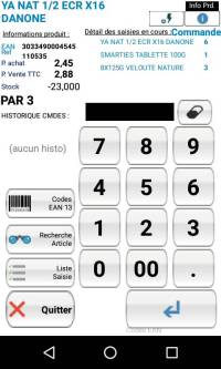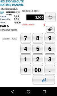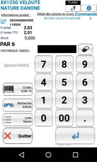 Scanner votre premier produit (ou taper son code EAN à l'aide du pavé numérique et la touche entrée) puis rentrer votre quantité et valider avec la touche entrée :