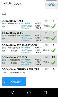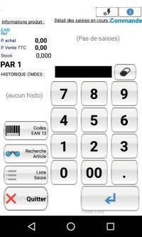 Cliquer sur l'icone “Recherche Produit” pour chercher un produit par désignation en tapant un mot de la désignation à l'aide du clavier tactile :