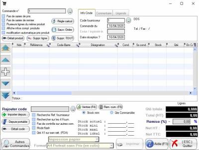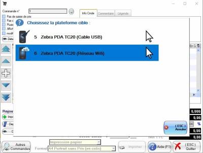 Dans STORE-POS cliquez sur “Depuis portable”, sélectionnez la façon dont vous avez vidé votre saison sur le portable, puis une fois validée et vérifiée vous pouvez transmettre,imprimer ou envoyer par mail votre commande :