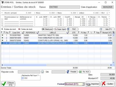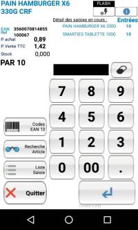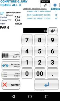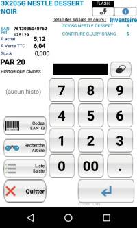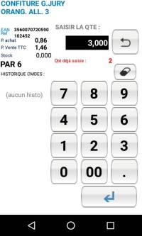 Scanner votre premier produit (ou taper son code EAN à l'aide du pavé numérique et la touche entrée) puis rentrer votre quantité et valider avec la touche entrée :