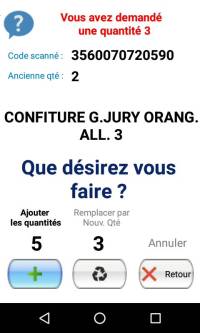 Si vous avez déjà scanné un produit, le logiciel vous demande ce que vous voulez faire Ajouter la quantité ou la remplacer :