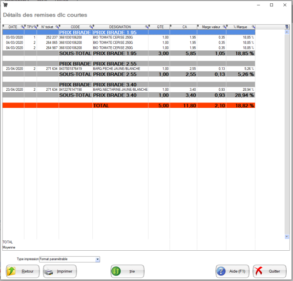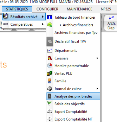 Pour pouvoir visualiser des statistiques de vente sur ces produits remisés en DLC Courtes il y a un menu spécifique dans Store-POS: