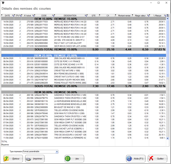 les cases Articles, sous-familles, Familles et Département vous permettent d'ajouter les sous-totaux de votre choix dans le tableau de résultat.