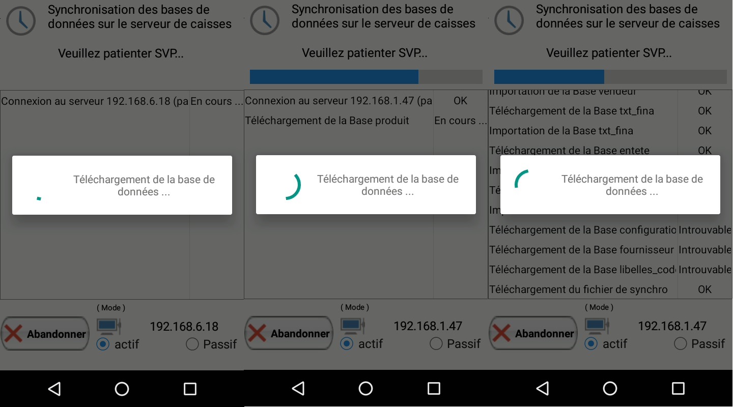 Au lancement du module Vente, un téléchargement de la base de données STORE-POS se fait :