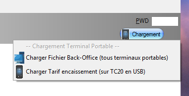 Ensuite sur le TC20 que vous avez connecté au PC cliquez sur le bouton charger le tarif (BackOffice)