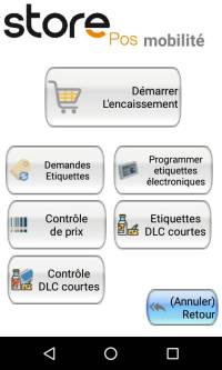 Dans le menu Etiquettes/controle prix du TC20 vous allez retrouver une partie Encaissement (C'est un module payant, il faudra vous retourner vers votre commercial), qui vous permettra de faire des encaissements simples sur le portable. Les tickets seront alors à vider sur une des caisses pour être comptabilisés dans votre chiffre d'affaire. (Obligatoire pour générer les pistes NF525 nécessaire en cas de contrôle fiscal)