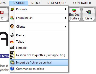 Cliquer sur Gestion puis Import de fichier de central.