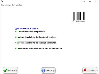 - Le choix numéro 4 permet d'ouvrir la gestion des Etiquettes Electroniques