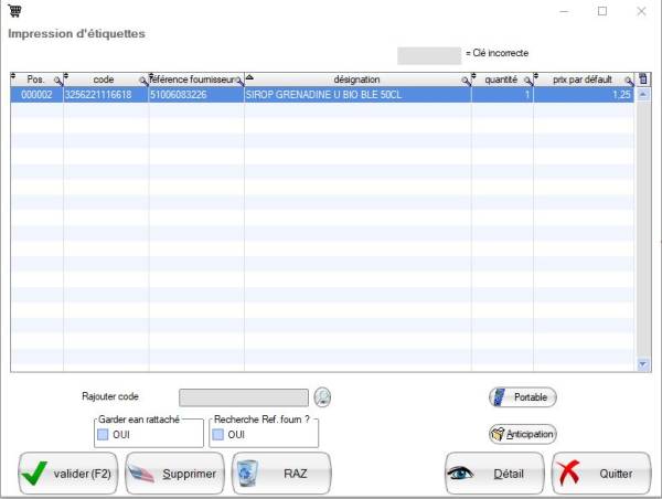 Dans ce tableau se trouve les étiquettes en attente de validation pour impression.