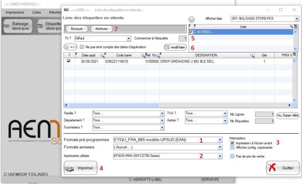 - Le choix numéro 2 permet d'ouvrir la liste d'étiquetage en attente