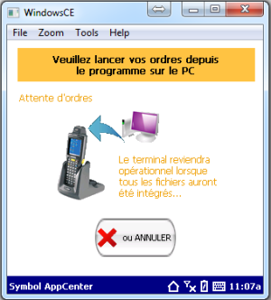 -A présent veuillez patienter quelques minutes, à la fin du processus le pocket reviendra sur son menu de départ et fin prêt a la commande (par la suite, le rechargement du pocket se fera que si vous avez intégré de nouveaux articles de la centrale).