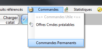 Pour accéder à la fenêtre de gestion de commandes il vous suffit de cliquez sur le menu “commandes / commandes permanents” comme indiqué ci-dessous.