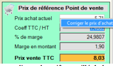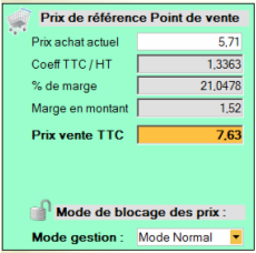 - Mode Marge BLOQUEE :le prix de vente sera calculé en fonction du nouveau prix d’achat et de la marge.