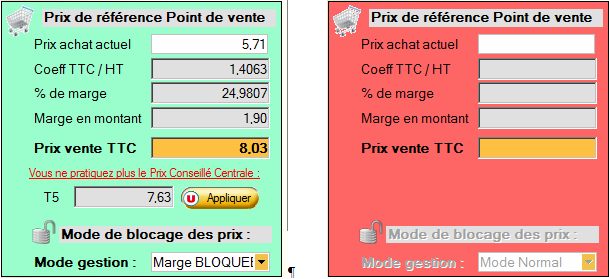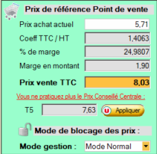 - Mode Prix BLOQUE : le prix de vente ne bougera pas si un changement de prix est envoyé par la centrale. Seul le prix d’achat sera mis à jour.
