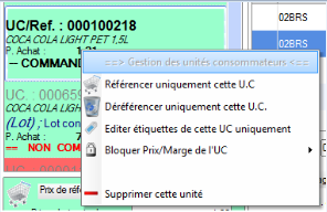 Vous pouvez également agir directement sur ces UC en utilisant le clic droit de votre souris. Ainsi vous pourrez référencer ou dé-référencer l'UC, demander une étiquette, ou supprimer celle-ci.