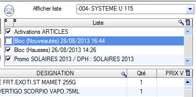 Lorsque vous gérez les mises à jour de prix dans U115 (cf.: LA GESTION DES BLOCS DE MISES A JOUR) et que vous validez les articles le logiciel vous demandera si vous souhaitez des étiquettes pour les articles qui ont changé de prix de vente ou de code de commandes.