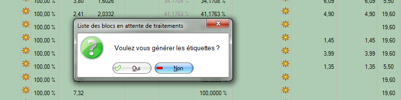 Vous pouvez également, dans la même fenêtre de traitement des blocs, utiliser le bouton suivant pour imprimer une étiquette sans l'envoyer immédiatement en caisse.