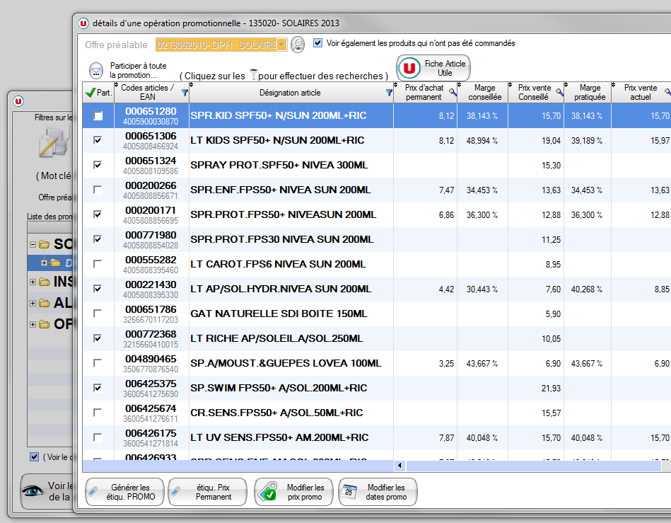 Dans le détails des promotions vous avez accès à deux boutons en bas de fenêtre vous permettant d'imprimer des étiquettes d'entrée de promo ou de sortie de promo.