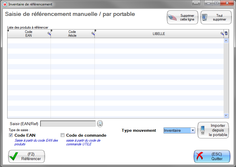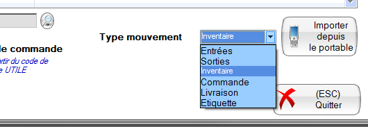 ou alors vous pouvez utiliser le portable de saisie (MC3100) pour construire votre liste et la vider sur l'ordinateur via le menu suivant: