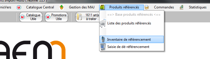 Vous avez la possibilité de demander le référencement (envoie en caisse) d'un ou plusieurs produits. Pour cela il vous suffit de passer par le menu “produits référencés / inventaire de référencement” :