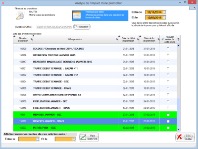 A noter : les promotions auxquelles vous participez (depuis la version 5.20C) sont surlignées en VERT