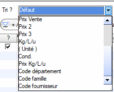 Dans chaque liste vous pouvez trier par Famille, Département, Fournisseur, TVA ou tous les autres critères disponible dans STORE-POS.