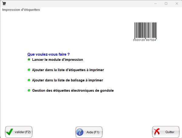 Depuis l'accueil de Store Pos, cliquer sur le raccourci ETIQ. LABEL s'ouvre.