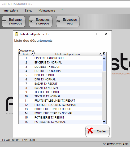 Vous pouvez ici visualiser les DÉPARTEMENTS de STORE-POS.