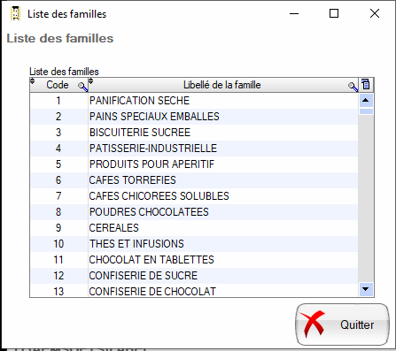 Vous pouvez ici visualiser les FAMILLES de STORE-POS.
