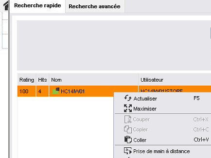 - On voit le poste concerné dans la liste puis faire un clic droit et prise en main a distance.