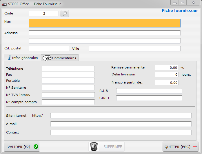 Vous arrivez alors sur la fenêtre suivante qui vous permet de saisir les noms et coordonnées du fournisseur