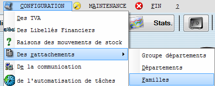 Dans la fenêtre principale cliquez sur le menu « Configuration/ Des rattachements/ famille » comme indiqué ci-dessous: