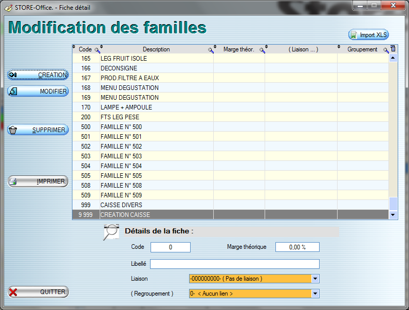 Le processus et les fenêtres sont les même pour la création ou la modification d’une sous famille, groupe, rayon