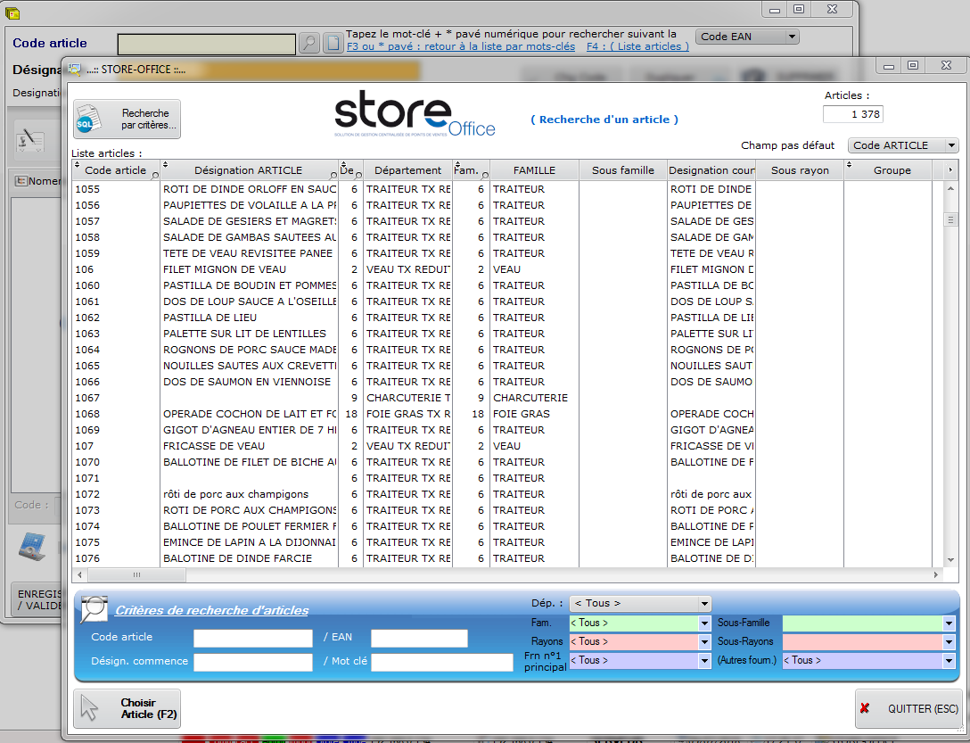 L'outils loupe a coté de CODE ARTICLE vous permettra d'afficher la liste de tous les produits de votre base.
