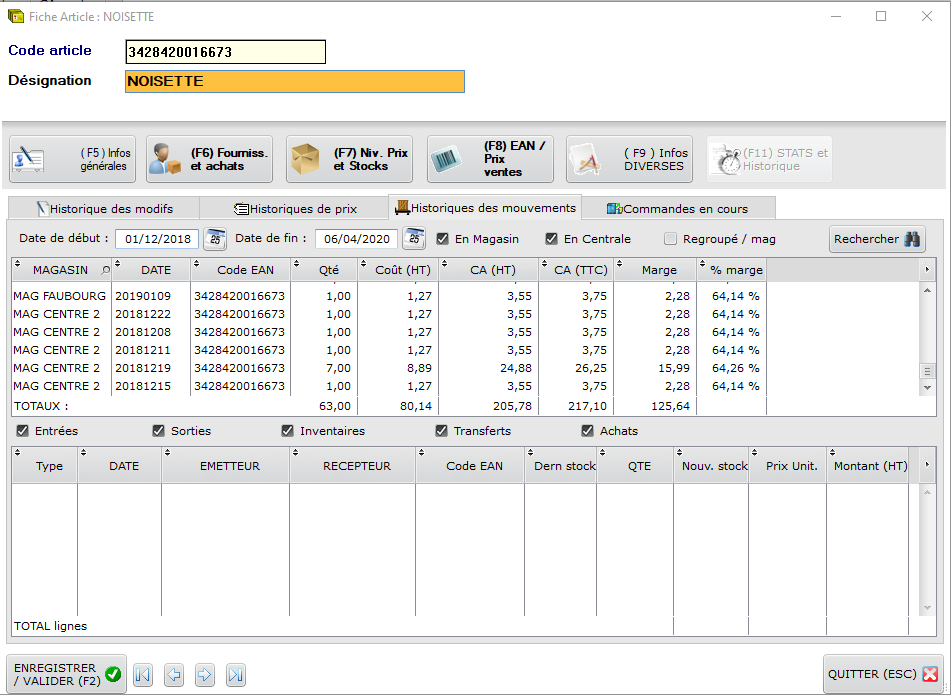 Cet onglet vous permet de visualiser diverses statistique concernant le produit telles que :