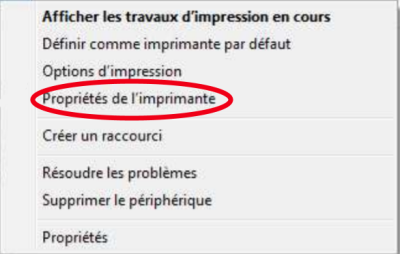 De nouveaux clic droit sur l imprimante, Propriété de l imprimante