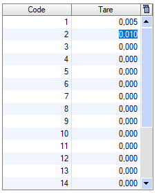 Pour modifier une tare rentrer la valeur dans le tableau dans la colonne Tare