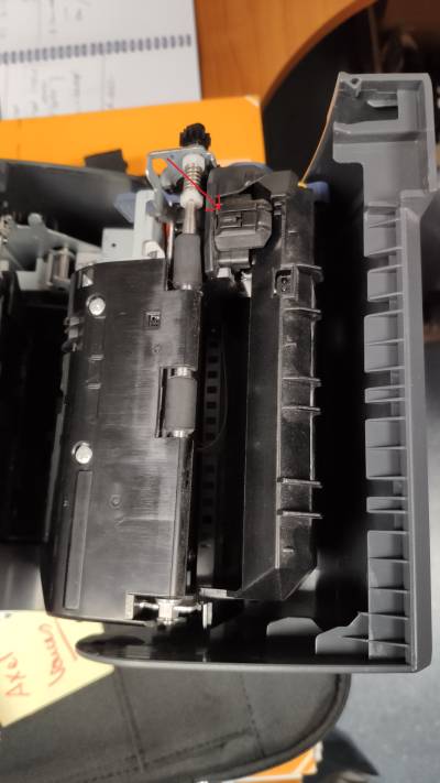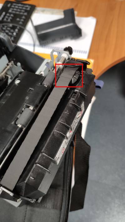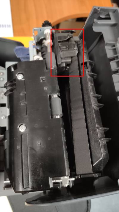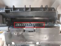 Photo de la tête d'impression avec MAUVAIS placement du ruban :