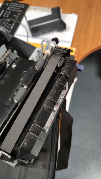 Photo de la tête d'impression avec MAUVAIS placement du ruban :