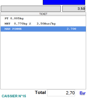 Pour finir la transaction s'affiche sur le ticket en attente avec “MAN” devant la désignation du produit:
