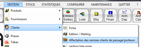 Affectation des remises clients de passage/porteurs