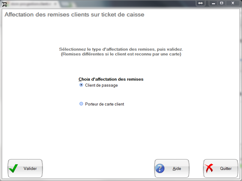 cette fonctionnalité vous permet d'attribuer des remises client porteurs ou non non (porteur de carte). ainsi pour tous les clients identifier par une carte client vous pourrez définir des remises.